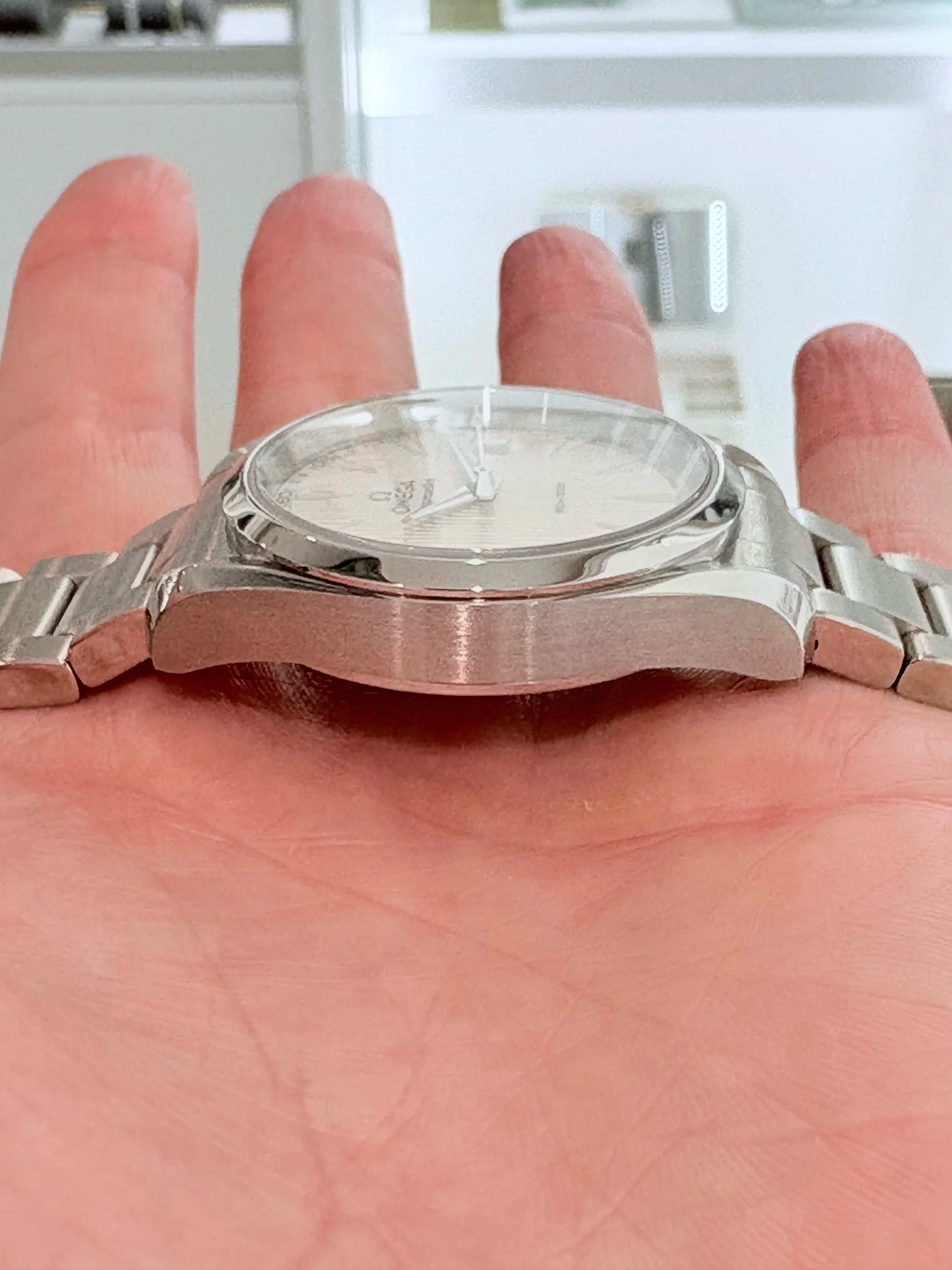 This 2015 reference 231.10.39.60.02.001 is a particularly intriguing piece in the Aqua Terra story. Powered by a high-precision quartz movement, it belongs to the final generation of men’s quartz Aqua Terras before Omega discontinued them completely—making it a standout choice for collectors and enthusiasts seeking something both practical and historically significant.
