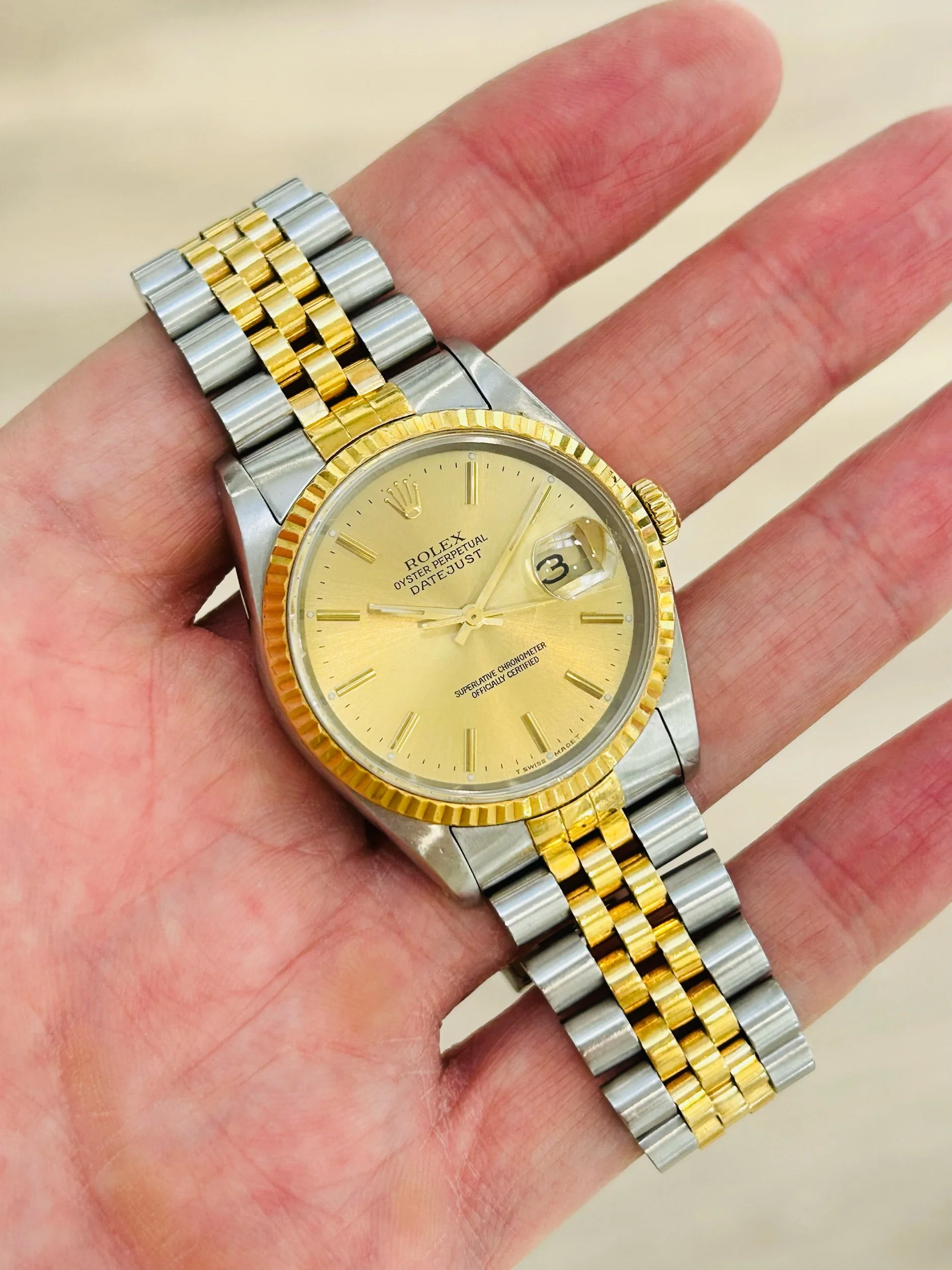 This 16233, with its champagne dial and two-tone design, epitomises the classic Datejust aesthetic and remains one of the most recognisable luxury watches ever made.