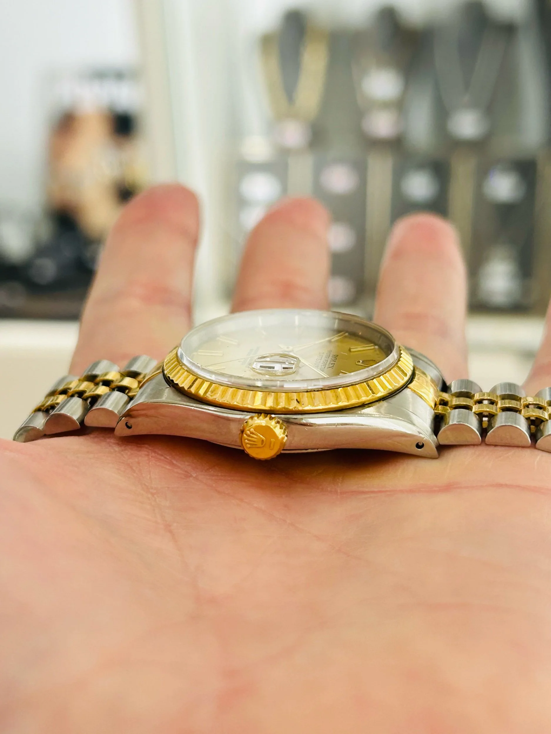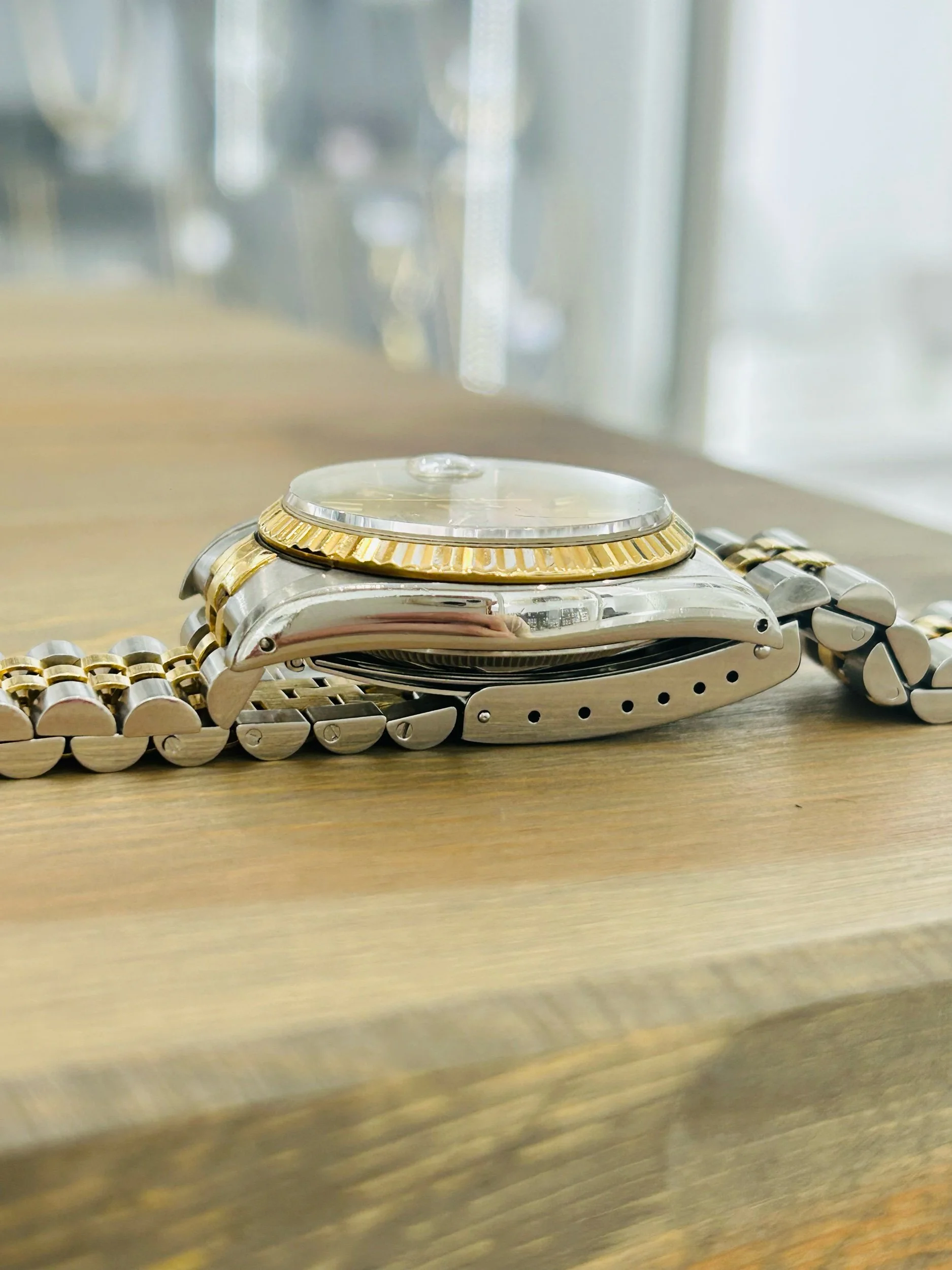 This 1990 example features the quintessential champagne dial, paired beautifully with the steel and 18ct yellow gold case and fluted bezel. It captures everything the Datejust represents: prestige, practicality, and enduring style.