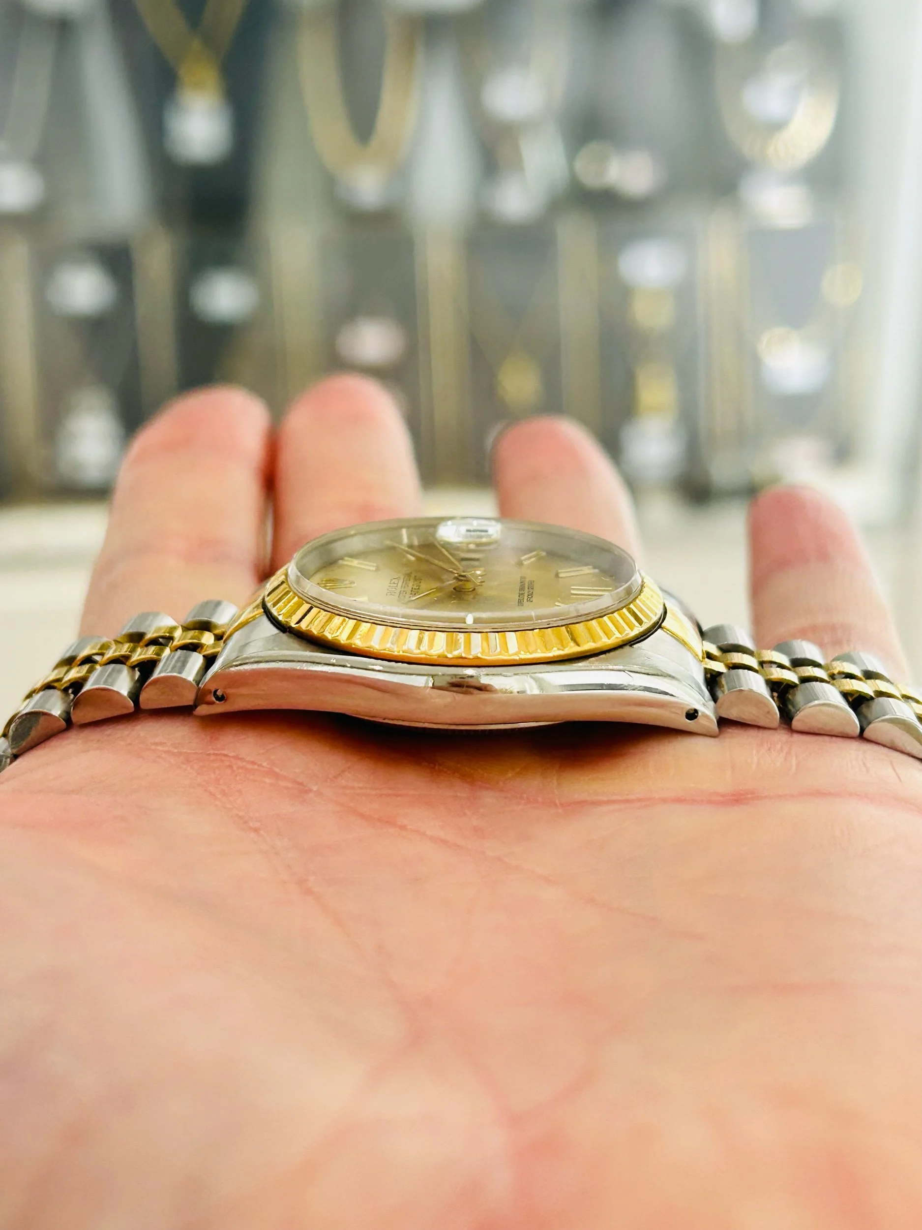 A quintessential two-tone Datejust with the timeless champagne dial—a perfect blend of Rolex heritage, luxury, and everyday wearability.