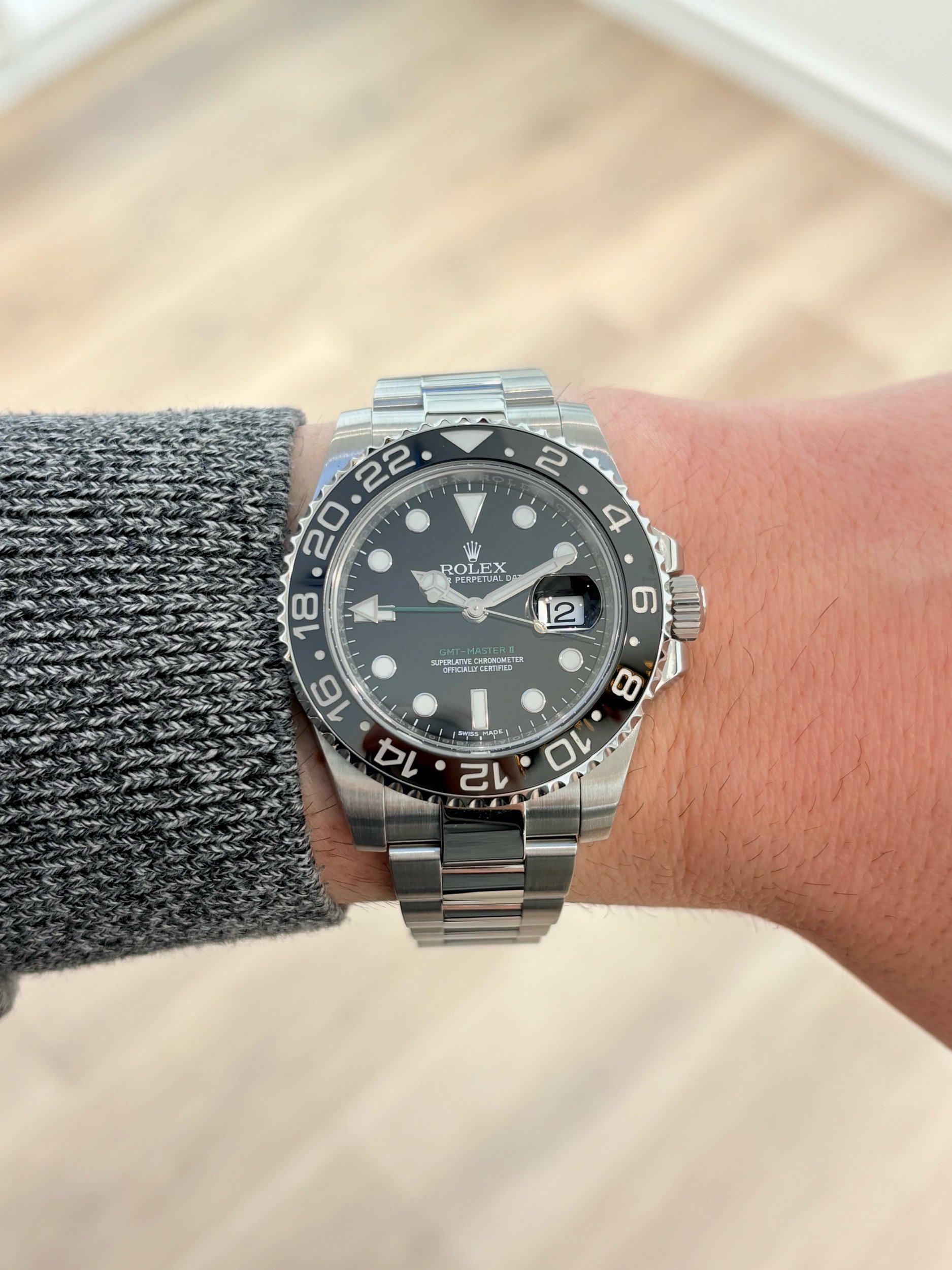 • All-Black Aesthetic: Clean, timeless, and effortlessly wearable—arguably the most versatile GMT-Master II configuration.