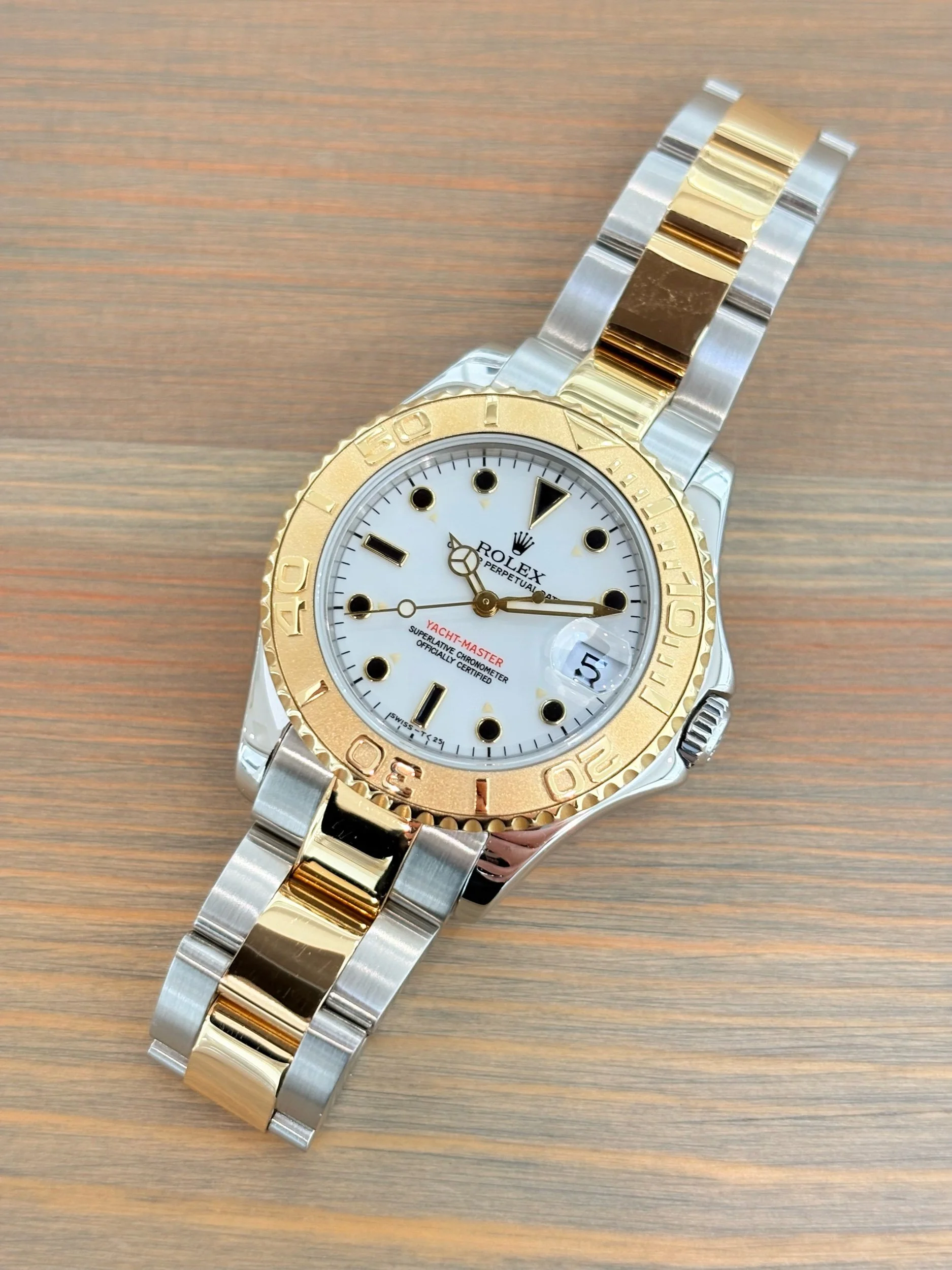 This Rolex Yacht-Master reference 68623 has been serviced in 2025, is presented in exceptional condition, and is supplied with its original Rolex box.