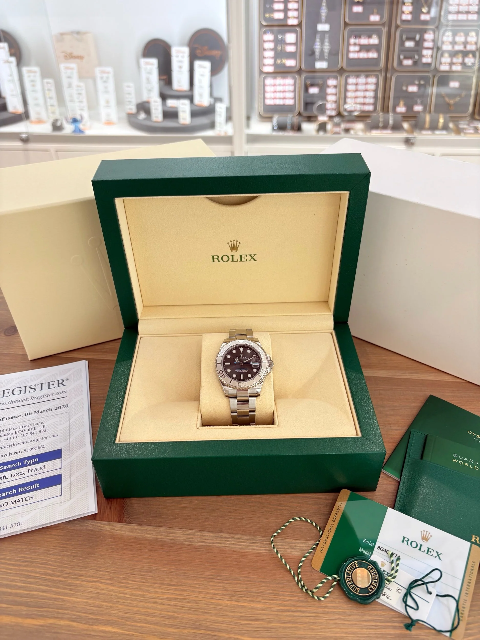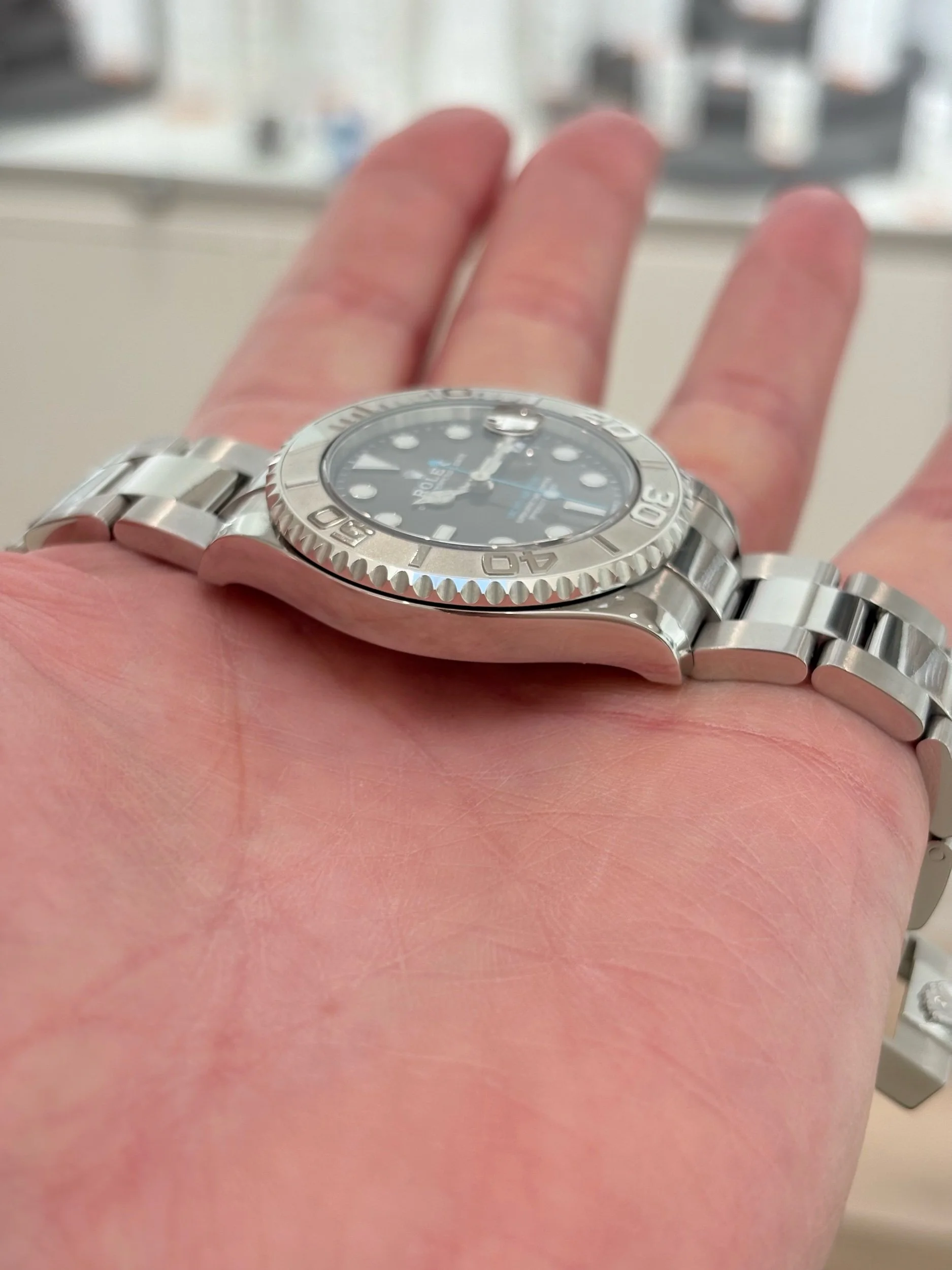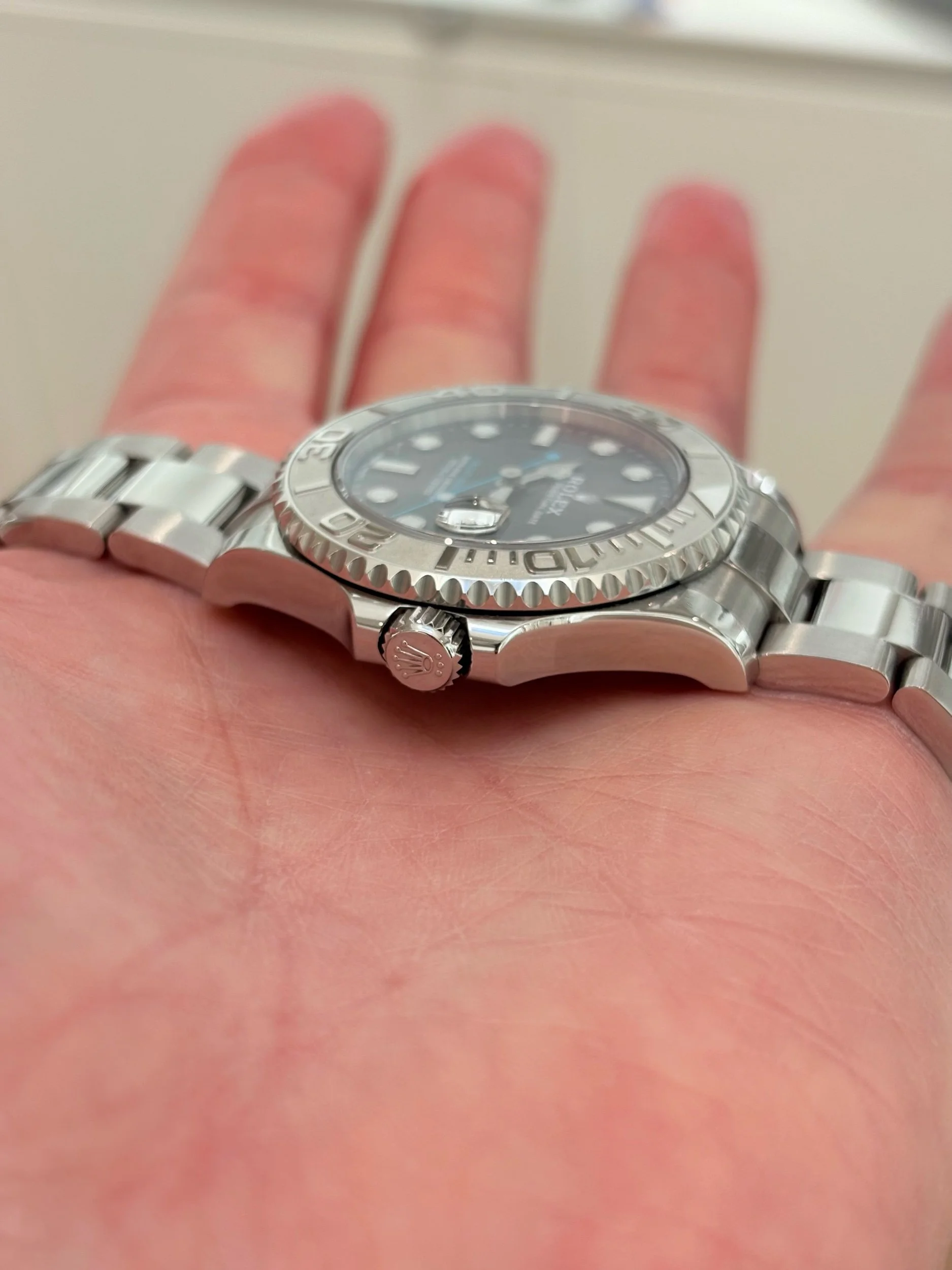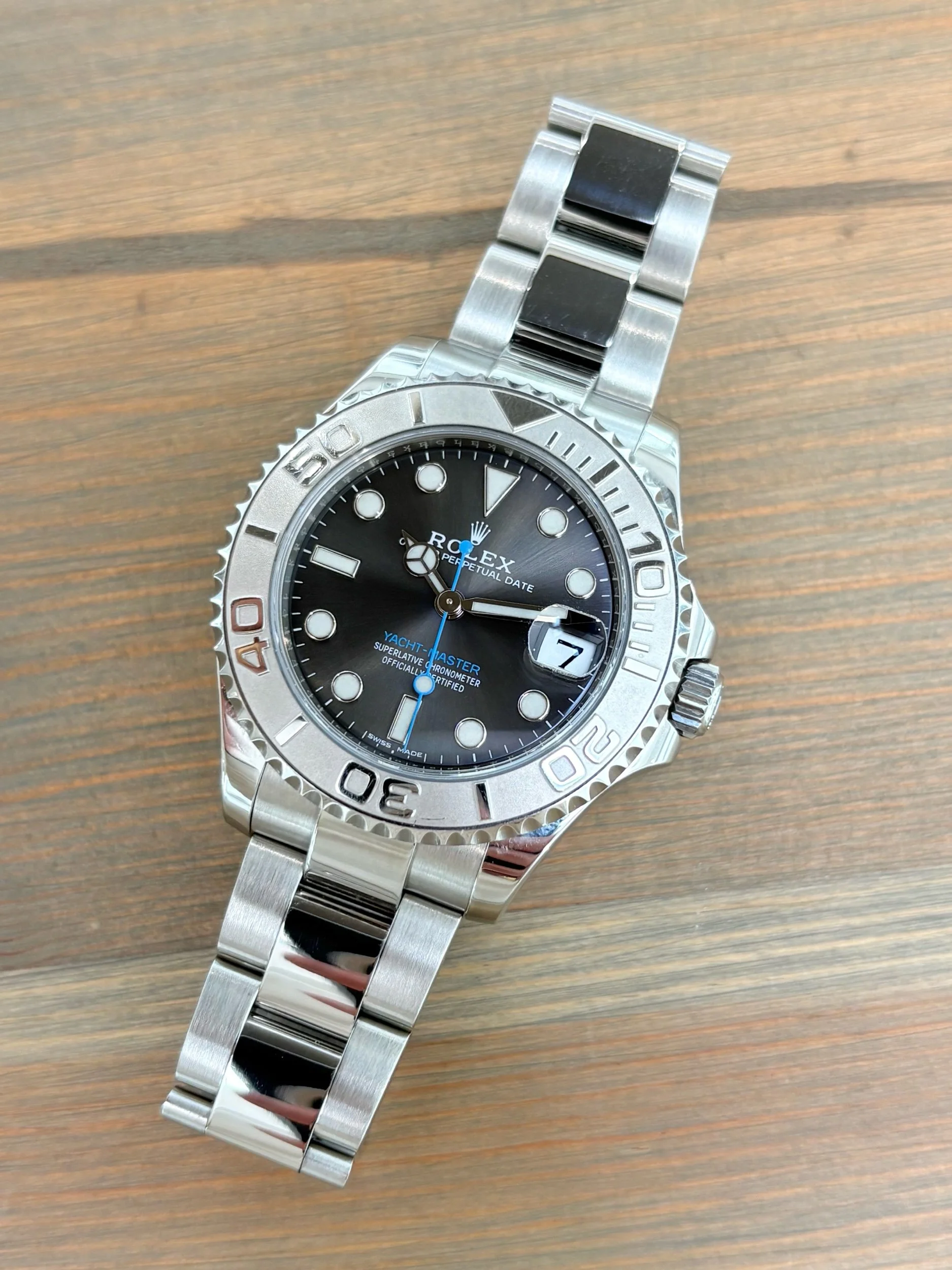 Reference 268622 represents the modern 37mm iteration of the Yacht-Master. Crafted in stainless steel with a platinum bezel, it features Rolex’s signature Rolesium construction, combining durability with a distinctive, elevated finish.