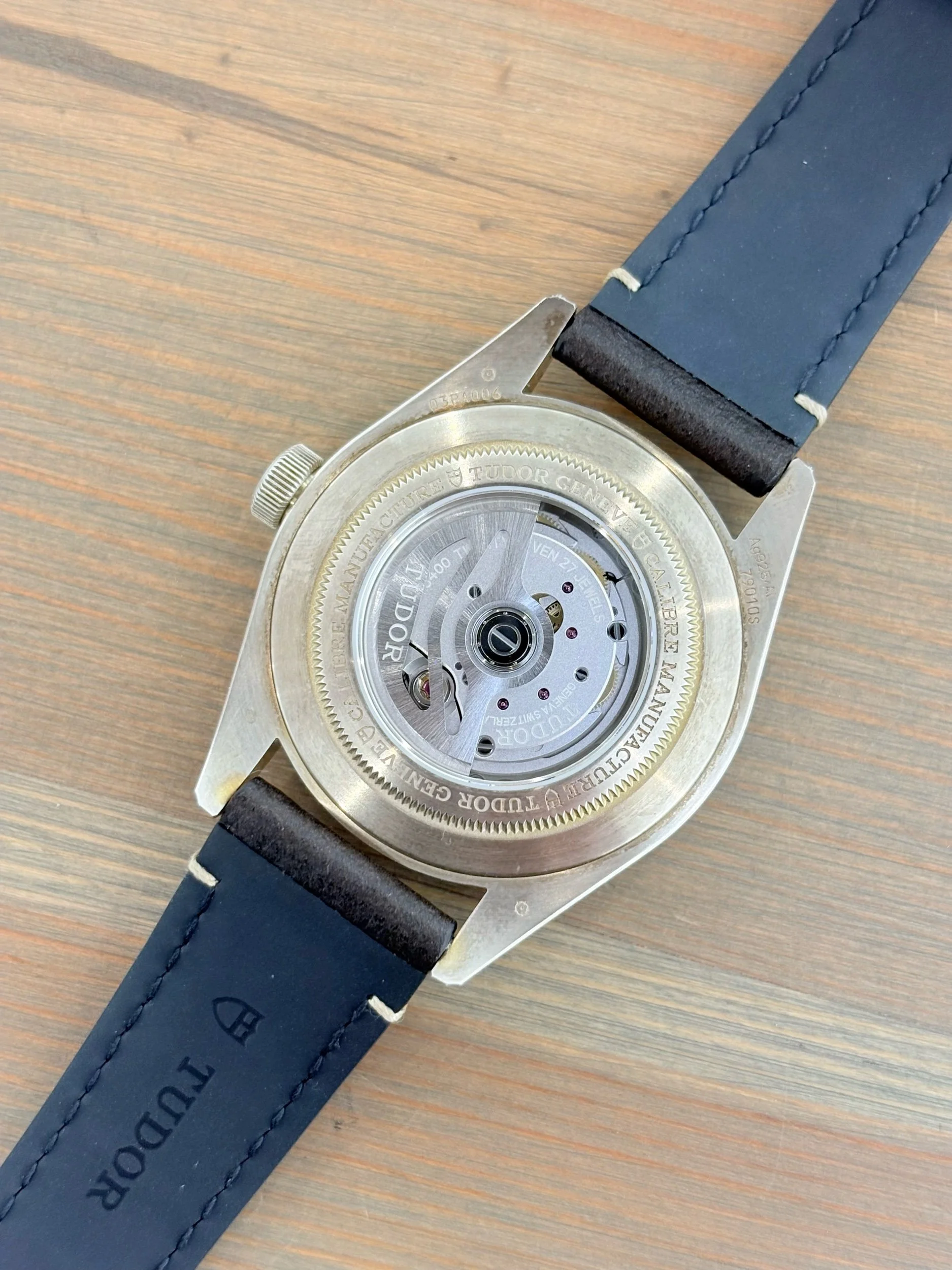 Bracelet/Strap: Leather & rubber lined Tudor strap